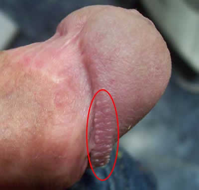 É bastante freqüente aparecer em torno da glande peniana uma série de pontos, parecendo espinhas brancas, que não se multiplicam, e ficam maiores na época do calor, mas retornam ao tamanho original, não coçam, não irritam, mas podem despertar no jovem angústia por não saberem ao certo do que se trata.