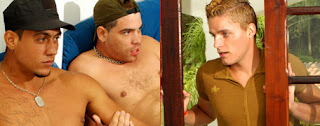 Mas agora, vendo que o caseiro estava junto com o amigo, ele sentia medo, pois nunca antes transara com dois homens ao mesmo tempo.